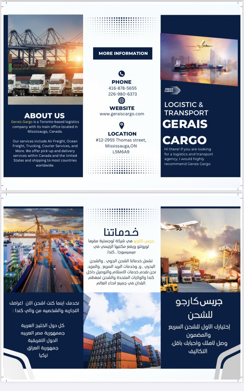 GERAIS CARGO LOGISTIC SERVICE Our services include Air Freight, Ocean Freight, Services, and More. We offer pickup and delivery services within Canada and shipping to most countries worldwide.